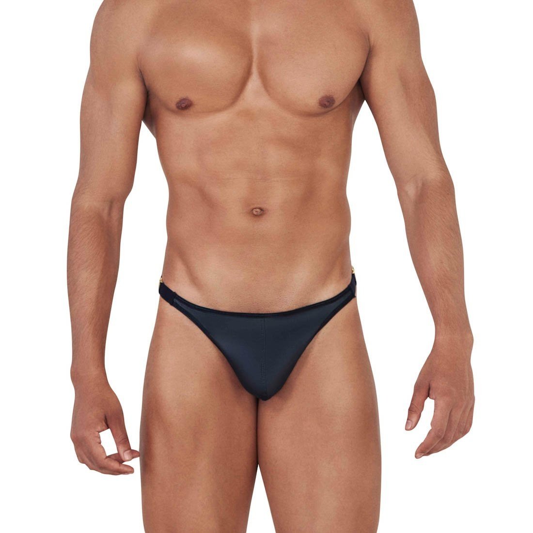 De Clever Misty stripperstring is een spannende string in zwart wetlook. Het heeft goud metalen clips op de heupen. Met deze clips kan je de string op een elegante manier uittrekken