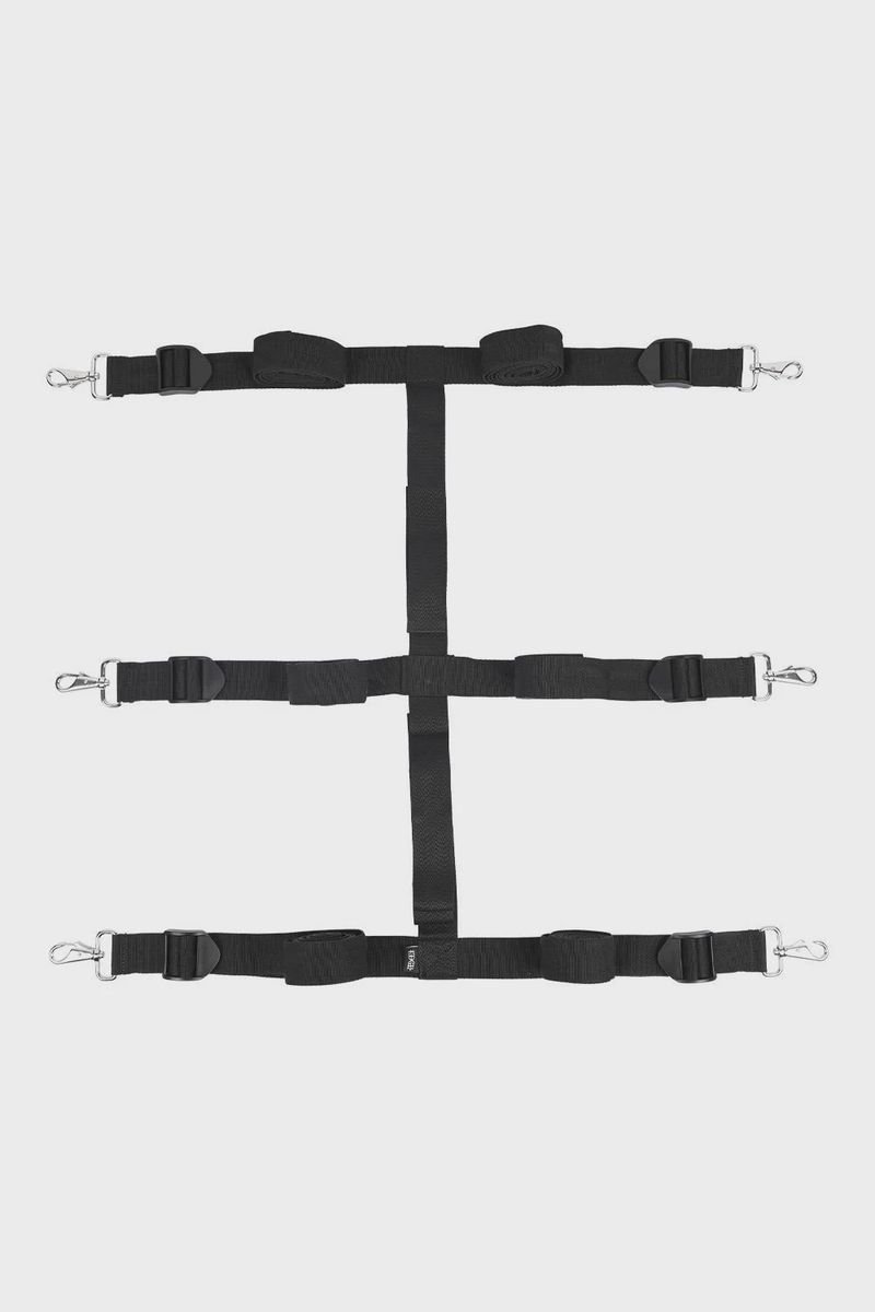 Perfect voor avonturen thuis of onderweg – dit veelzijdige systeem past op elk formaat matras en kan zelfs gebruikt worden rond sommige deuren. Met zes bevestigingspunten biedt dit systeem talloze mogelijkheden: bevestig handboeien, een halsband of andere bondage-accessoires en creëer jouw ultieme fantasiescenario.