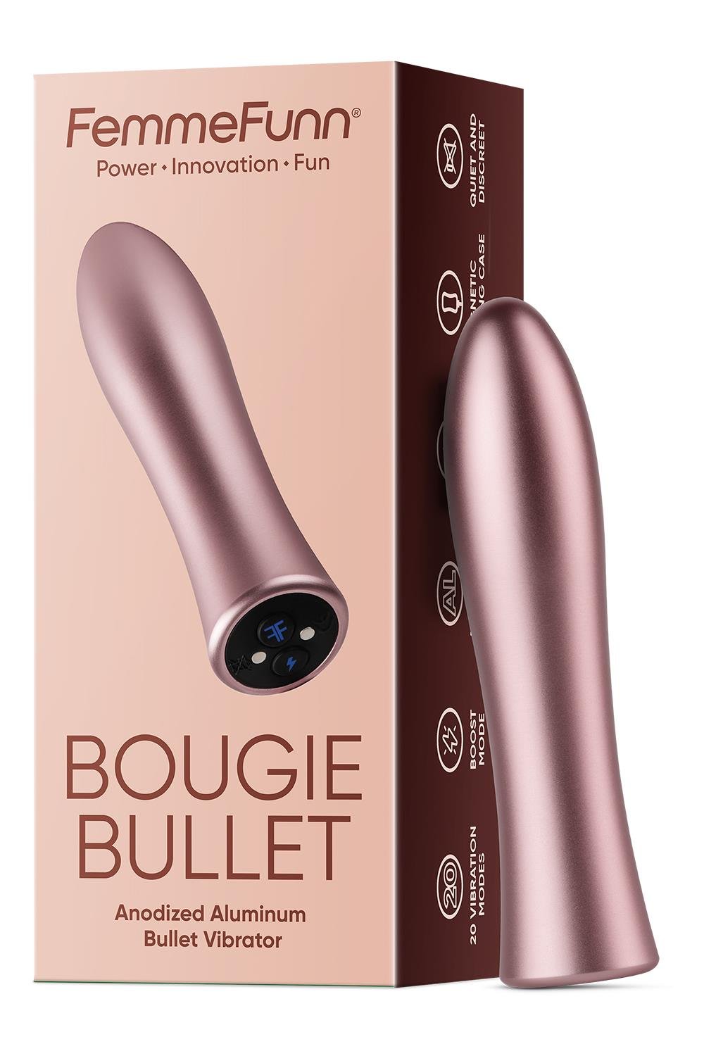 Gemaakt van slank geanodiseerd aluminium, verwent de Bougie Vibrator Bullet al je fantasie met maar liefst 20 vibratiemodi, waaronder een krachtige Boost-functie. Met de boost functie ga je gelijk naar de krachtigste vibratiestand, dus een orgasme kan dan niet uitblijven.