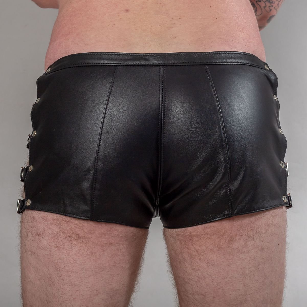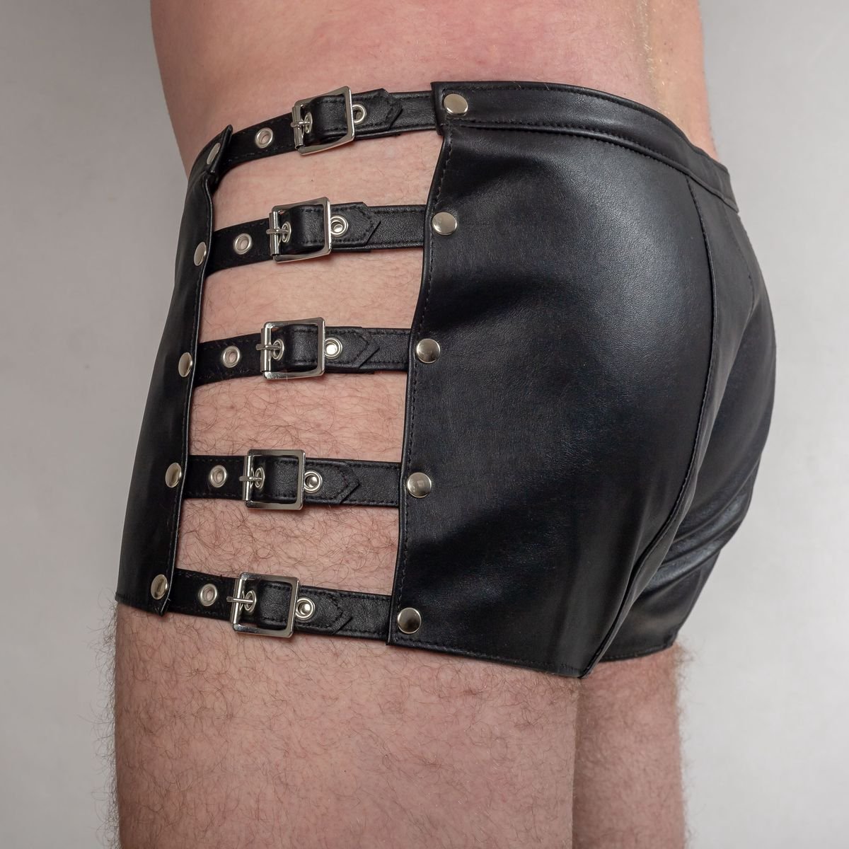 Stoere short waarbij de zijkanten zijn gemaakt van gespen. Hierdoor kun je het helemaal aan jouw lichaam aanpassen. Er zit natuurlijk ook nog een rits aan de voorkant