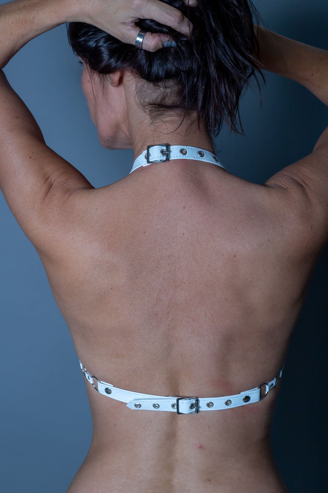 Deze prachtige triangle bikini top is gemaakt van zacht lamsleer met metalen ringetjes. De borsten komen hier prachtig in uit.