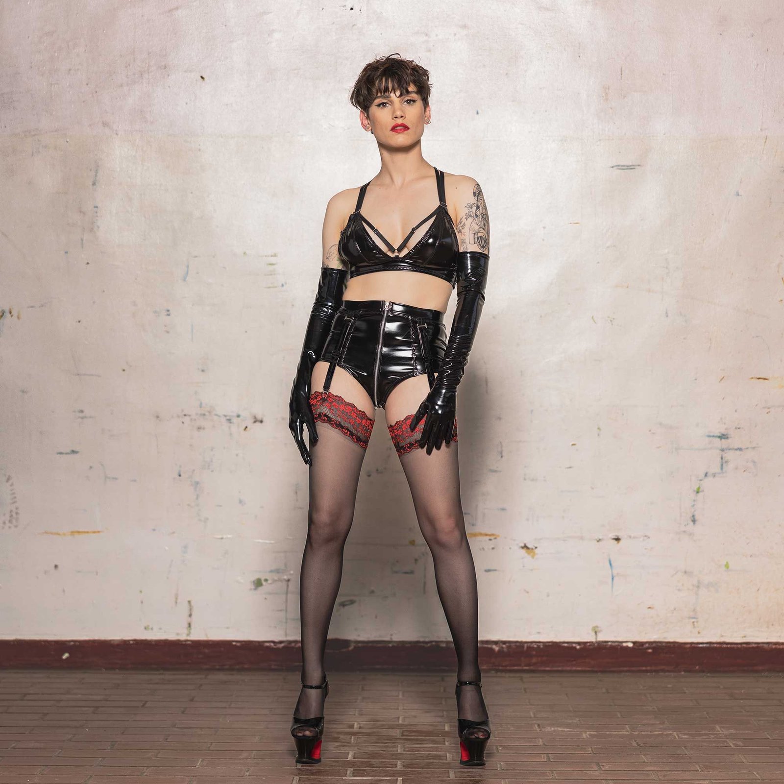 Super sexy en vrouwelijke lak short met rits in het kruis. De jarretelles zijn verstelbaar en afneembaar! Dus je kunt het perfect ook dragen zonder jarretelles.