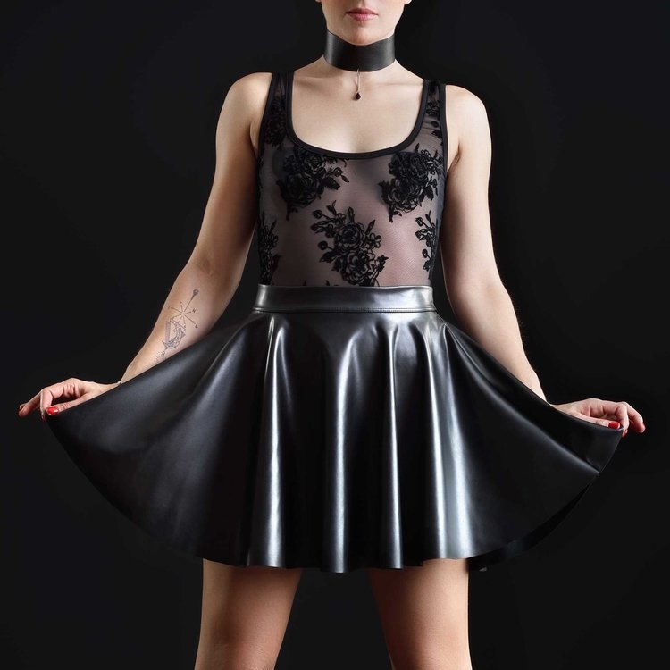 Lekker sexy uitgaan kan je perfect met dit Kat Rokje, een zwierend kunstleren rokje van Patrice Catanzaro.