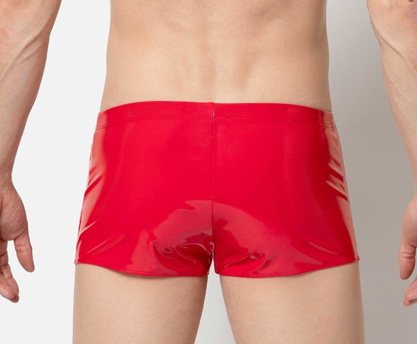 De complete boxer is gemaakt van meest luxe en comfortabele rode stretch lak die er te krijgen is. Op de linkerheup zit een zakje met rits, handig voor bijvoorbeeld een sleuteltje of muntjes.